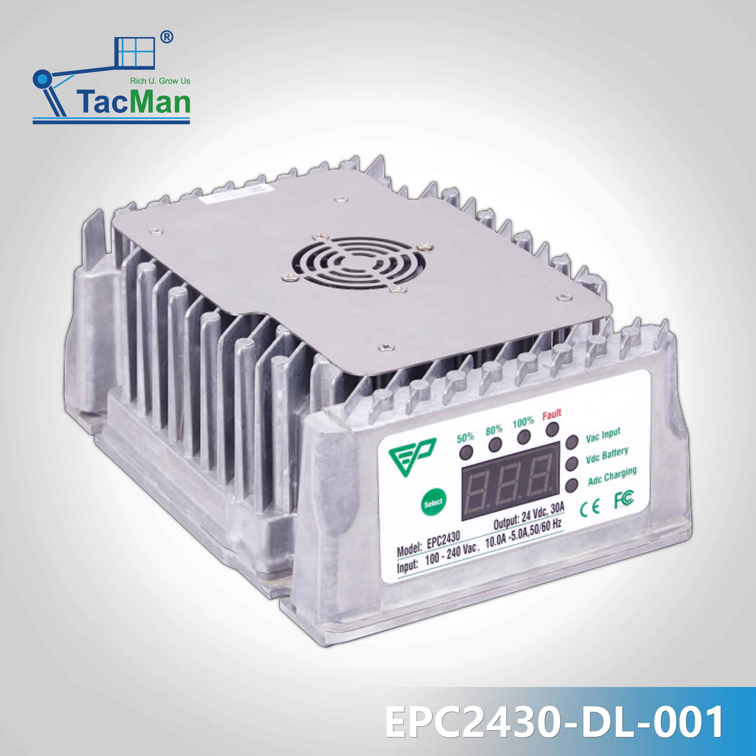 The EPC2430-DL-001 is a 24 V 30 A industrial battery charger commonly used on aerial work platforms. It is part of the Enerdrive ePOWER EPC2430 charger series and provides a single 24 V DC output designed to charge AGM, flooded, or GEL lead-acid batteries used in lift equipment.