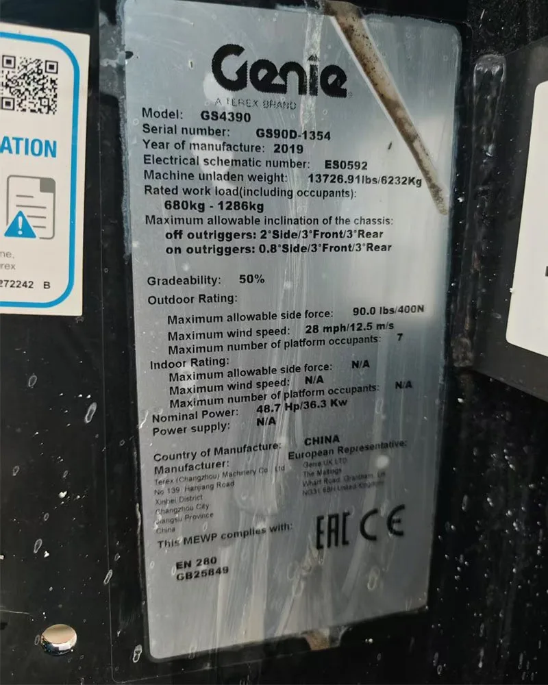 Cette nacelle élévatrice à ciseaux Genie GS-4390RT d'occasion a été fabriquée en 2005 et est certifiée ANSI. Elle a 600 heures de fonctionnement et est comme neuve avec des batteries et des pneus neufs, mais elle ne coûte que 6,500 XNUMX $. Elle est actuellement située aux États-Unis et est disponible à la location locale ou à l'exportation vers n'importe quel pays et port.