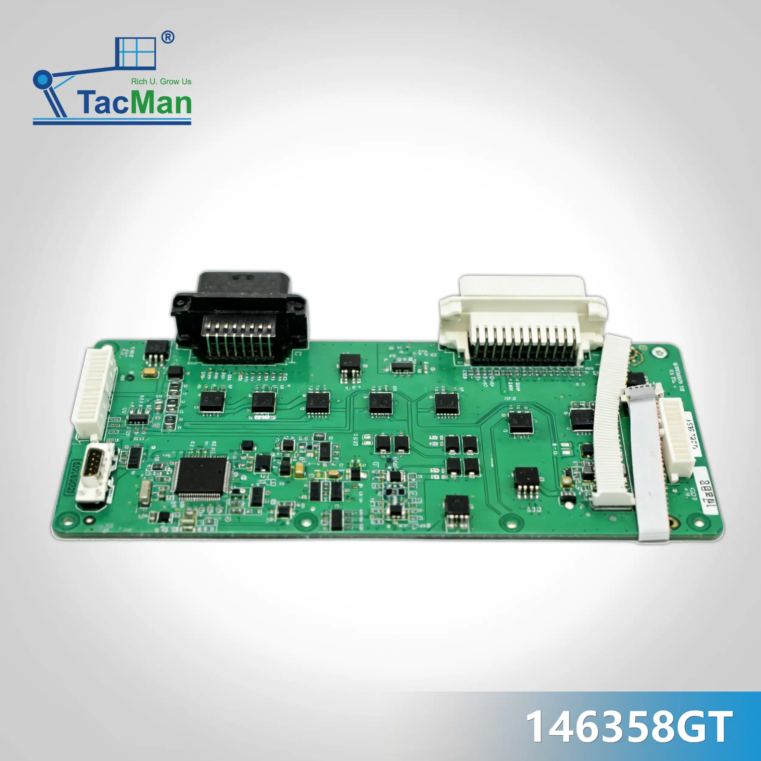 O 146358GT é uma placa de circuito impresso (PCB) de controle superior usada em plataformas elevatórias Genie. Ela funciona como a placa eletrônica principal dentro do sistema de controle da plataforma, processando sinais de controle de interruptores e joysticks e transmitindo comandos para a rede de controle da máquina.